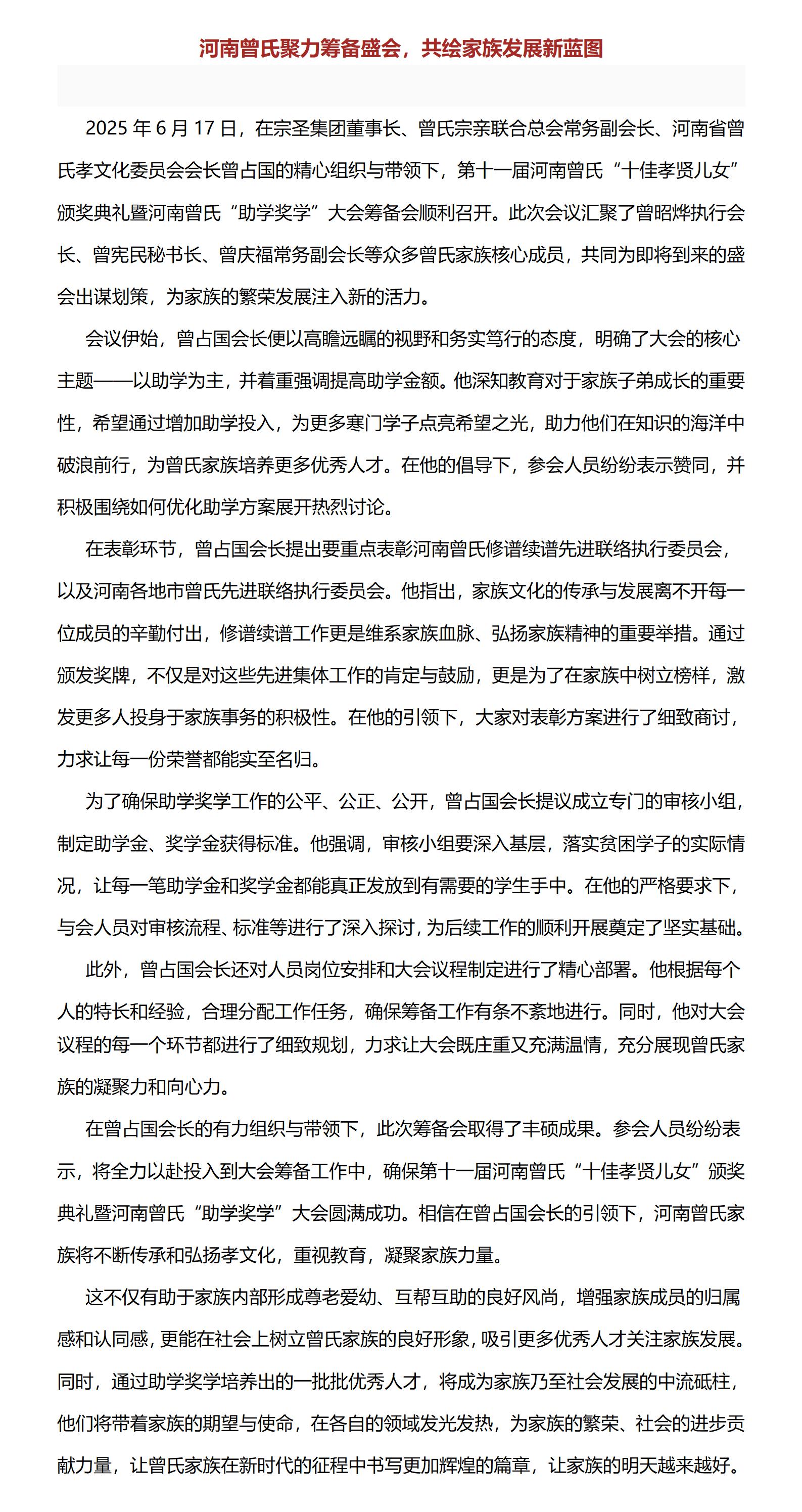 河南曾氏聚力筹备盛会,共绘家族发展新蓝图